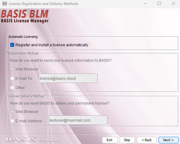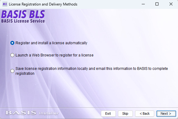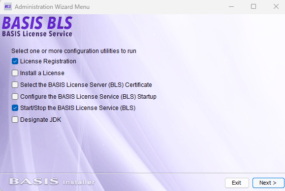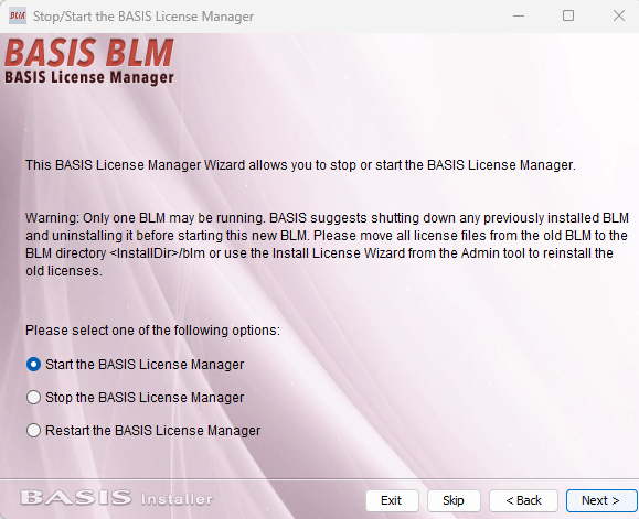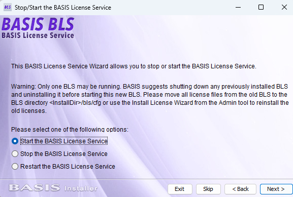 Entering Next will reach out to BASIS to register the license. Then Start or Restart the BLS.
